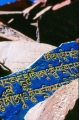 翻过一道梁子后,眼前突然展现出一片广袤的平地,远远的就看见松格玛尼石经城堆砌在那里。总算到啦!松格玛尼石经城其实也是个“另类“的玛尼堆,或者说是个巨型的玛尼堆。它远看就像个古代的军事要塞,长宽约50多米,高度俺估计超过10米以上。由无数的石板砌成。同样,每一块石板都布满经文或佛教石刻画。据说,因为草场泥地松软,还有一半多陷到地下去了,和巴格玛尼墙一样,它依然被佛教徒们继续在加高,同时也在继续下沉。传说松格玛尼石经城是藏族英雄格萨尔王为了纪念手下战死的弟兄们而建立的一个小玛尼堆,很快就成了一个圣地。后人们纷纷来此朝拜,也继续添砖加瓦,最后形成了巨大的玛尼城。有考证说从最下面发掘出的石板上,刻的不是藏文经书而是梵文的。这有力的证明了松格玛尼石经城诞生于佛教进入西藏之初。从石经城一边有个小门可以进入石经城里面,入口很窄,仅能容下一身。里面如同迷宫一般,狭窄的通道弯来拐去,让人摸不着头脑。我就不幸在里面暂时迷路约一刻钟,最后狼狈的爬过一个石堆才找到出口。在里面呆着,万籁寂静,太阳火辣辣的立在头顶。偶有几只秃鹫飞过,哇哇的叫2声,令人感觉毛骨悚然。我背着NF1,仔细看着石刻,很多石刻文字工整,刻刀刚劲有力决不拖泥带水。尤其一些石刻画,记述着一些佛教传统故事,线条简洁,彩色画是用矿物盐绘制的,历经岁月而不褪变。我居然在一片石板上看见了西游记故事...就像连环画一样。时间比较紧,还得赶路,没来得及在石经城里再顿悟出什么。我们匆匆撤退了。当晚10点过到达玛尼干戈,至此,石渠之行也算结束了。